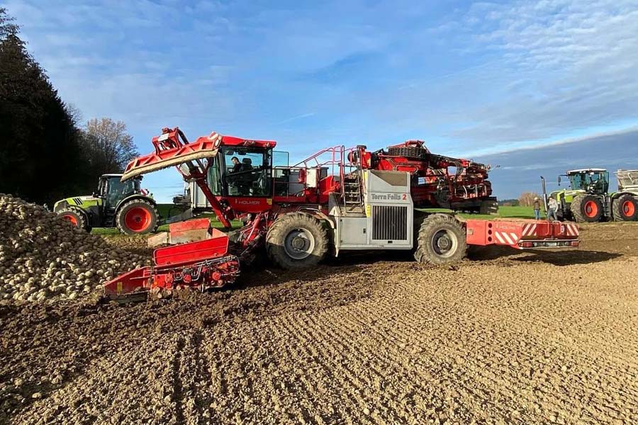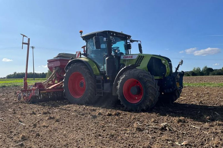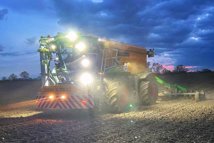Gärrestausbringung mit Claas-Xerion und Scheibengrubber -